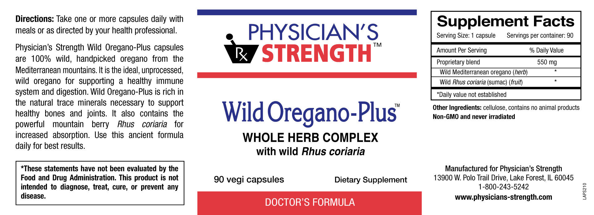 Physician’s Strength Wild Oregano-Plus capsules are 100% wild, handpicked oregano from the Mediterranean mountains. It is the ideal, unprocessed, wild oregano for supporting a healthy immune system and digestion. Wild Oregano-Plus is rich in the natural trace minerals necessary to support healthy bones and joints. It also contains the powerful mountain berry Rhus coriaria for increased absorption. Use this ancient formula daily for best results.